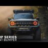 Constructed for weight reduction without sacrificing protection using 1.5mm and 3mm steel tubing combined with 3.5mm steel plates. A paintable aluminum mesh panel at the center improves airflow to the intercooler. Inset light mounts accommodate two 3" LED pod lights and one 20" dual-row LED light bar for supplemental off-road lighting. Mounting holes are provided for front parking sensors, with plugs included for models that do not have sensors. Finished in micro-texture black powder coat for durability and corrosion resistance. Simple bolt-on installation.